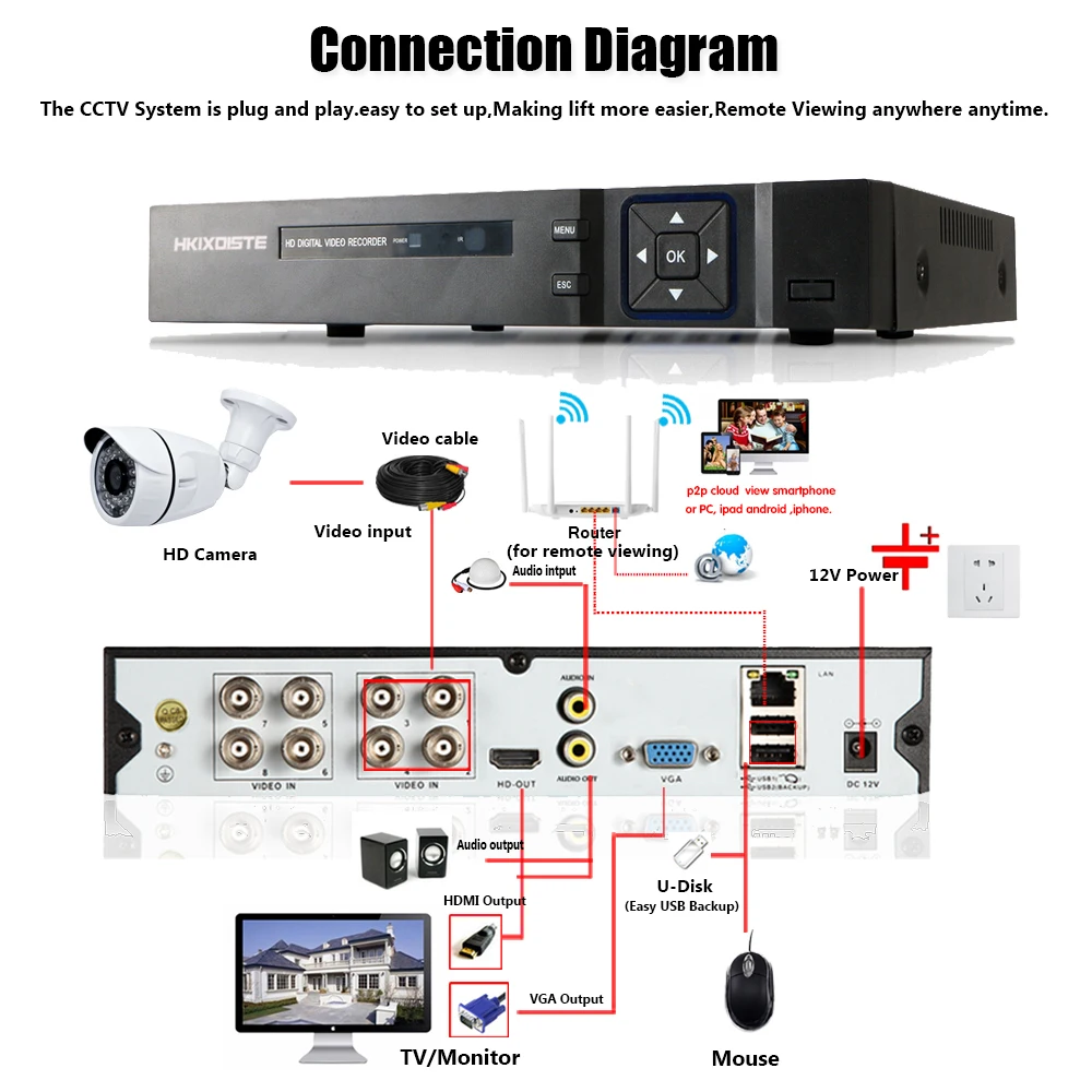 CCTV AHD Security Camera Onvif APP Viewing P2P Weatherproof In/Outdoor Day/Night Vision IR-CUT CCD