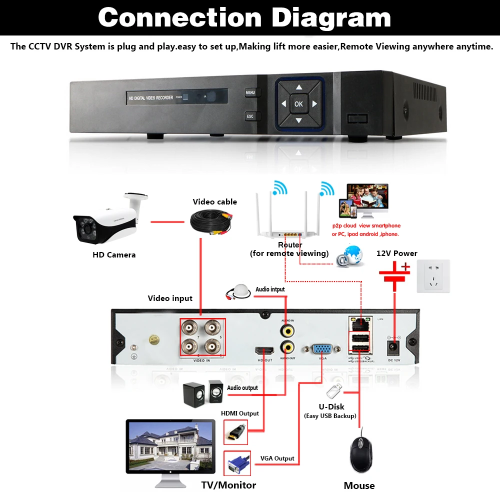 Review 4 Channel 8 Channel CCTV DVR 5MP H.265 4CH 1080P 8CH 4MP Cloud Video Recorder For Surveillance Secu