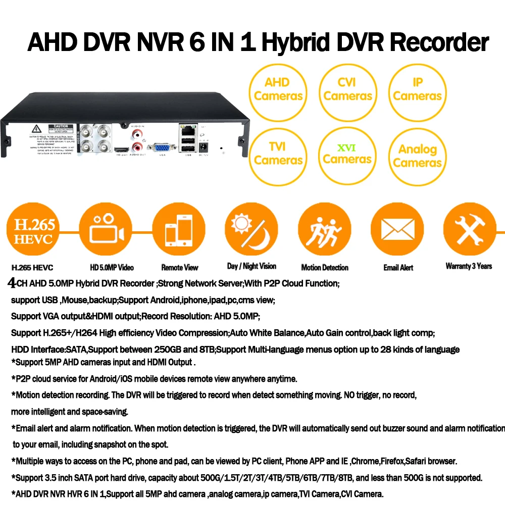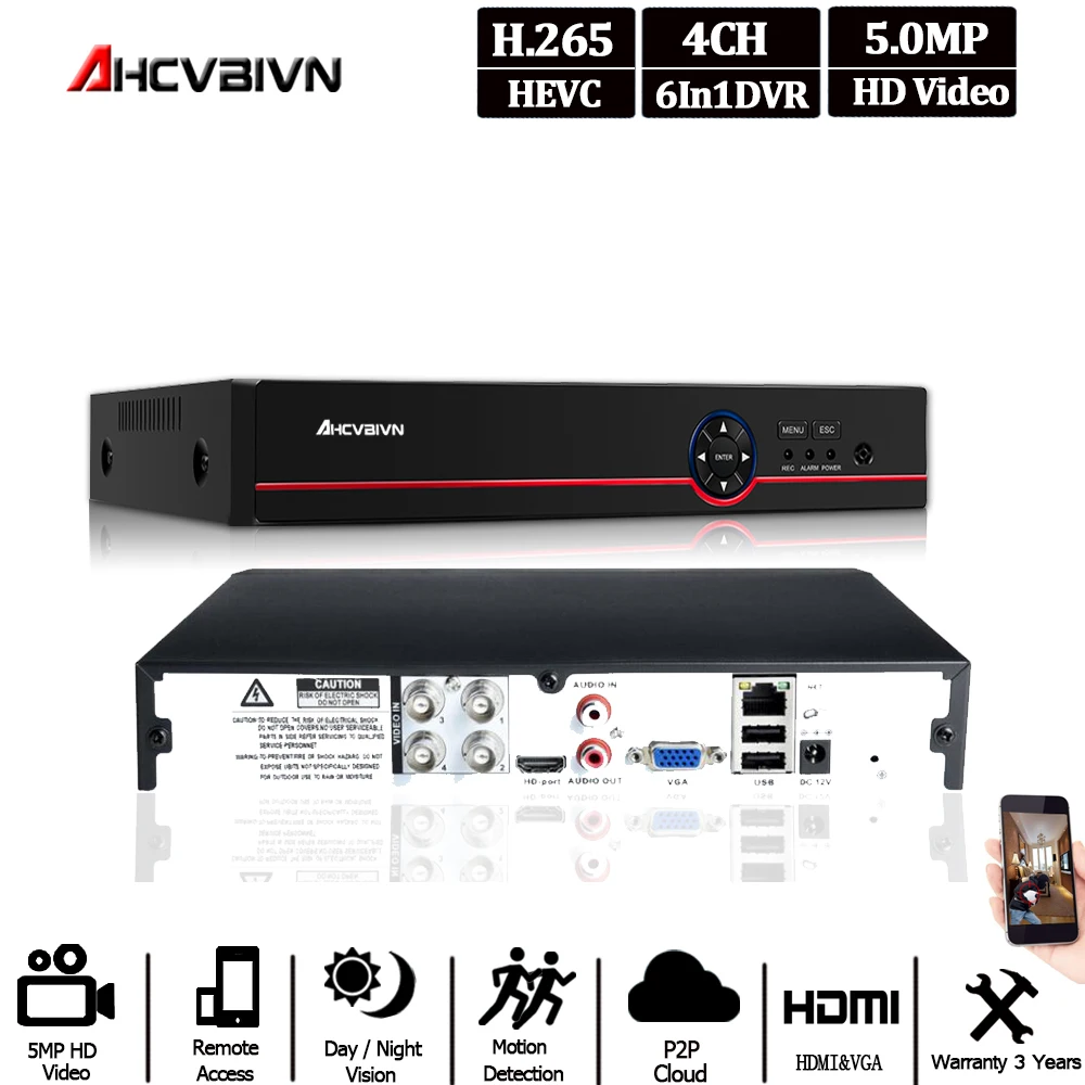 Review 5MP H.265 VGA HDMI Security 4CH Surveillance CCTV DVR 4 Channel 5MP 5M-N 15fps DVR RS232 PTZ For An