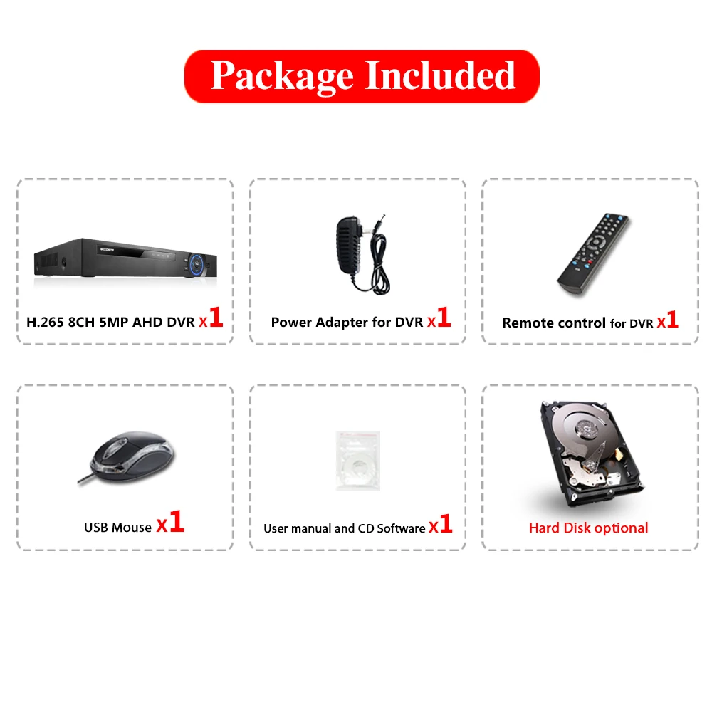 8CH AHD Video Two-way Audio Recorder H.265+ 5MP 4MP 1080P 8CH 6 in 1 Hybrid DVR Wifi XVi TVi CVI IP