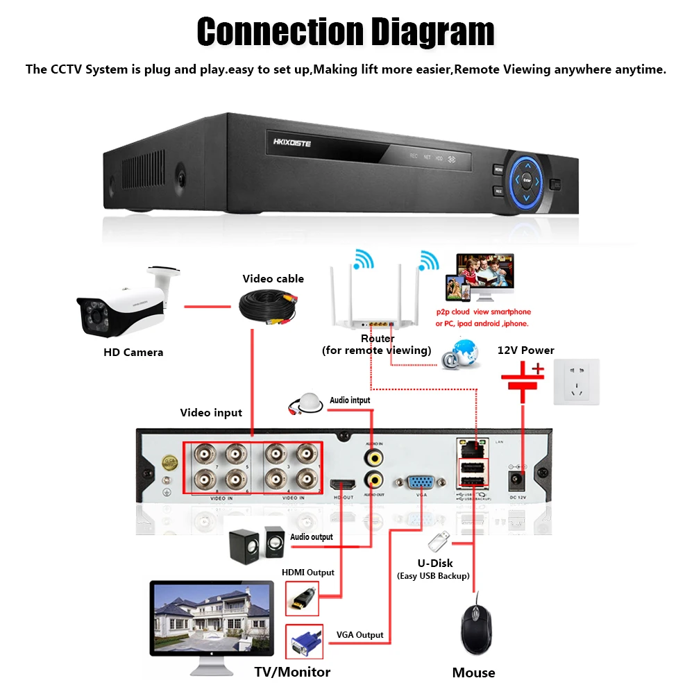 TOP 8CH AHD Video Two-way Audio Recorder H.265+ 5MP 4MP 1080P 8CH 6 in 1 Hybrid DVR Wifi XVi TVi CVI IP