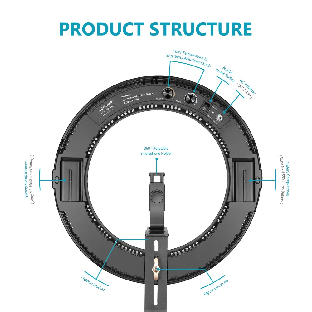 Neewer Outer Dimmable Bi-color SMD LED Ring Light Lighting Kit for Camera/Smartphone Photo Studio V